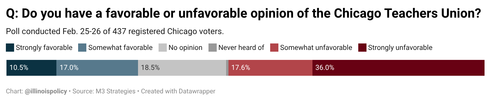 Despite CTU attempting to avoid financial scrutiny by its members, its record-low popularity among likely Chicago voters is inescapable. In a recent poll, just 27.5% had a favorable opinion of CTU, and almost half said they were less likely to vote for a candidate who takes CTU money.