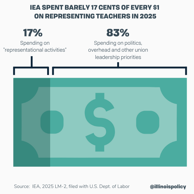 It appears IEA is using teacher union dues to prop up its own expensive employees while failing to spend even 17 cents of every dollar to represent those teachers.