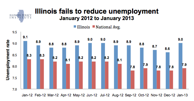 The fact remains that Illinois remains mired in an economic slump while much of the country continues to improve. The national unemployment rate dropped by 0.4 percentage points to 7.9 percent over the past year.