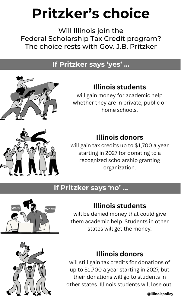 That will happen in Illinois only if Gov. J.B. Pritzker lets the state’s schoolchildren benefit from the Federal Scholarship Tax Credit program, established by the Educational Choice for Children Act.